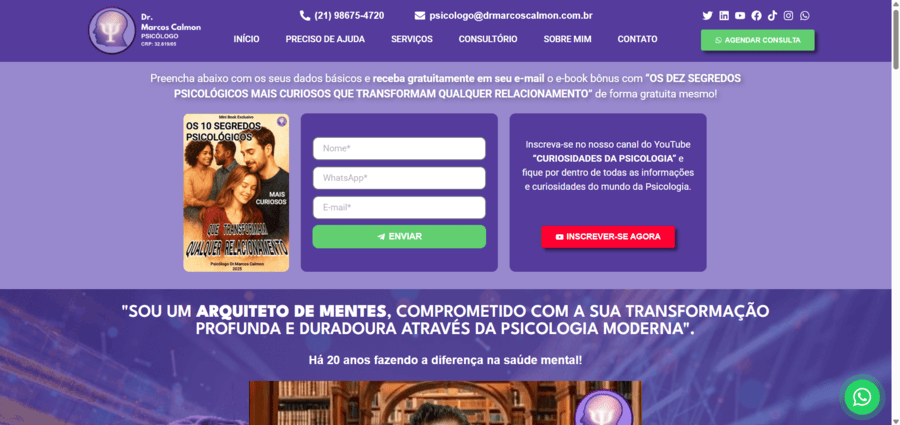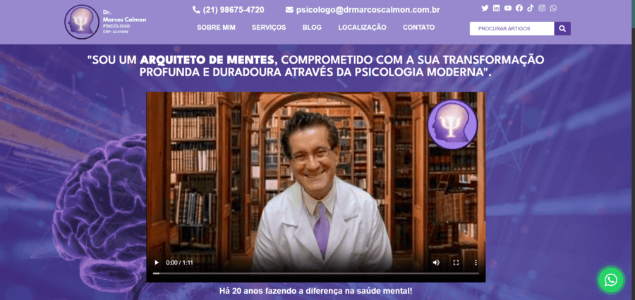 "Sou um arquiteto de mentes, comprometido com a sua transformação profunda e duradoura através da psicologia moderna".